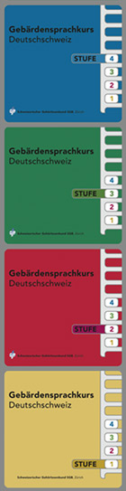 Gebärdensprachkurs Deutschschweiz: Stufen 1-4 (Lexikon, Erzählungen, Dialoge, interaktive Übungen, Lexikon, linguistische Erklärungen). 4 CD-Roms. Boyes Braem, P. (Project Director) Zurich: Schweizerischer Gehörlosenbund SGB. 2003 – 2005.